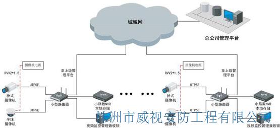 門店類連鎖店視頻信號同樣采用TCP/IP的方式傳輸,整套系統通過設在店內的小型路由器的接入即可,所有的信令傳輸均通過該設備完成。